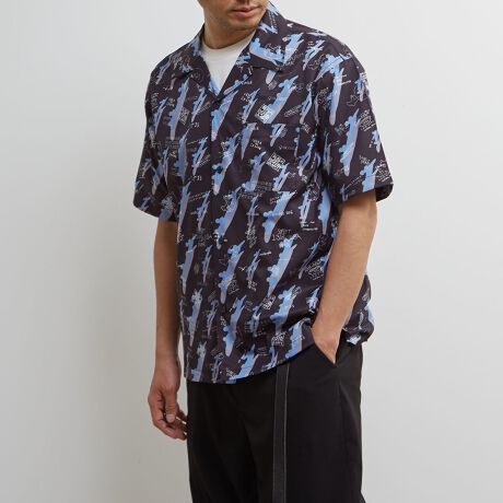様々な絵の具やマーカーペン、フォトコラージュ、独特の間違ったスペルの文字など独自の手法により創り上げられる子供の心を持ち続けている彼ならではのメッセージ性に溢れた色彩豊かなユニークなデザインが魅力的で世界中に多くのファンがいることでも知られている。model:H179 B95 W84 H98 着用サイズ4(L)