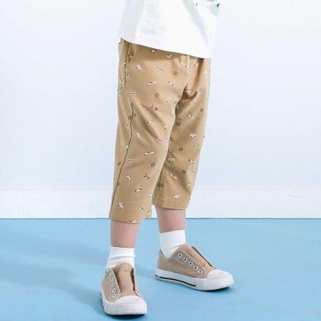 パッと目を引く総柄デザインのパンツはコーデの主役級アイテム。