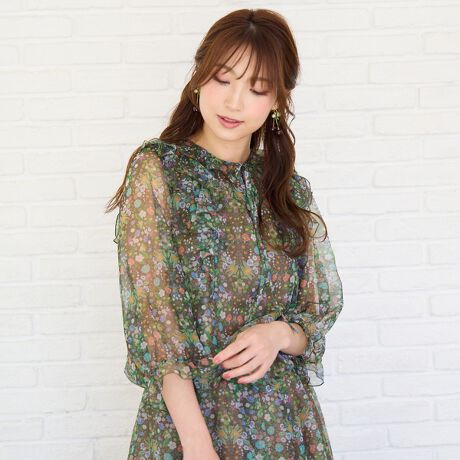 yukiemonデザイナー・松浦由起江氏プロデュースのテキスタイルブランド『22fabric』のフラワーガーデン柄をシフォンにプリントしたJolly Poupee限定素材。