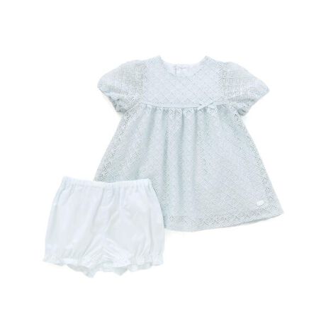 蝶々のようなラッセルレースが華やかな女の子ベビー用ブルマ付きワンピース。