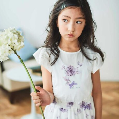 ロマンティックなあじさいプリントが華やかな女の子用Tシャツ。
