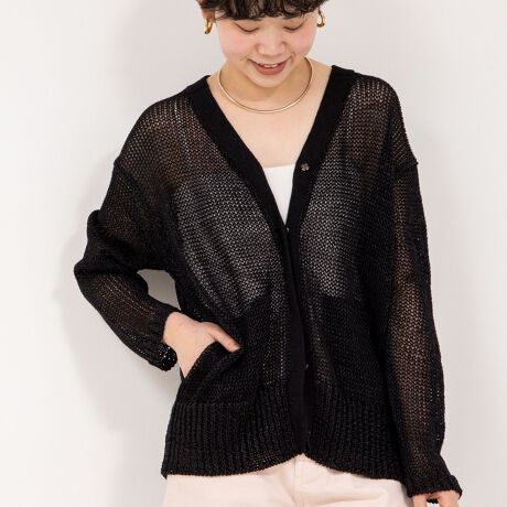 《手洗い可能》ギマ ポリ/リネン Vネックカーディガン