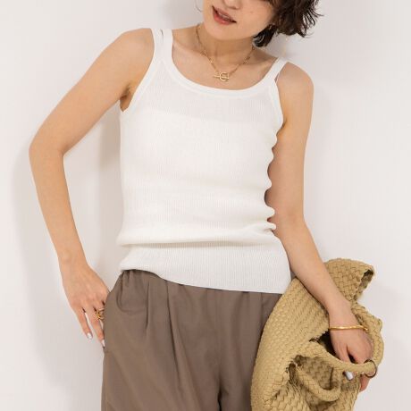 《アンサンブル対応》《手洗い可能》ペーパーヤーン2WAYリブタンクトップ