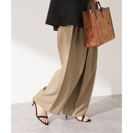 フロントにタックを施したワイドパンツ。