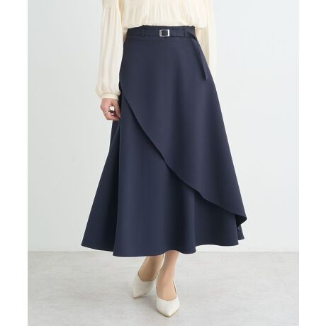 柔らかい肌触りと程よいハリで綺麗なドレープを魅せる女性らしいスカート。アシンメトリーにカットしたラップ風デザインがゆらりと優しい動きでフェミニンに印象付けます。ウエストには共布ベルトを加え、アクセントの効いたメリハリあるラインを演出。程よい分量のフレアと長めの丈感でスタイルアップ効果にも期待のアイテムです。透け感[なし]