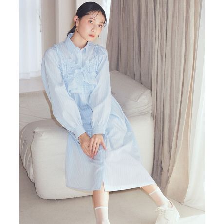 <b>【超十代-ULTRA TEENS FES-2025 せきぐちりささん着用アイテム】</b>シャーリングビスチェとシャツワンピースがセットになった嬉しいアイテム。ビスチェは前後逆に着たり、オフショルダーやワンショルダーなどアレンジ次第でマルチな着こなしが楽しめます。ワンピースはゆとりのあるサイズ感でストレスフリーな着心地。それぞれ単品でも着回しがきき、スタイリングの幅が広がるアイテムです。透け感[ややあり]