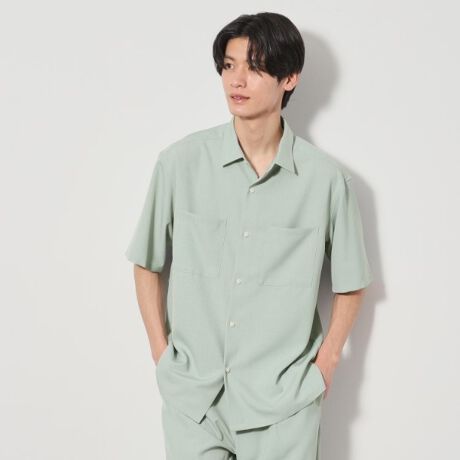 適度な落ち感で着易く、ドライポリ素材の上品できれい目な印象に仕上げています。