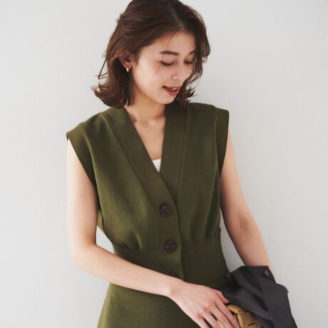 コンパクトなニットベストはボリュームのあるバックスタイルが印象的な一枚。