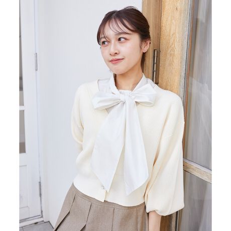 揺れるリボンチャームが印象的なビジューボタンカーディガンが登場♪