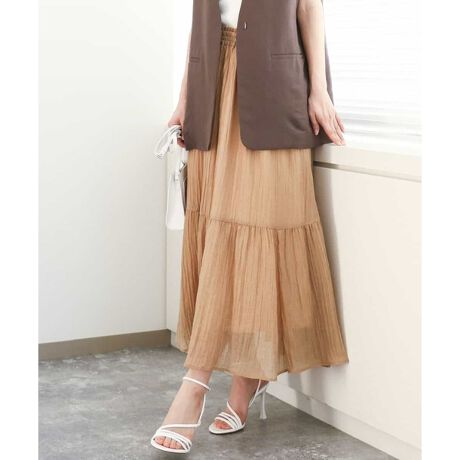 大人っぽく履きこなせる楊柳素材を使用したティアードスカート。表面感のある素材がシンプルな着こなしのアクセントに。程よく透け感のある素材ですが、ポケットは表から透けて見えない丁寧な仕様で仕上げています。