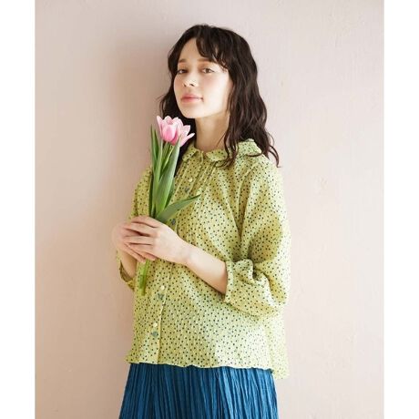 ドットが可愛いブラウスは無地アイテムとの相性が抜群。スカートにもパンツにも好バランスに決まります。同素材のスカート【GJHFA33200】とセットアップにしてワンピース風にもお召しいただけます。