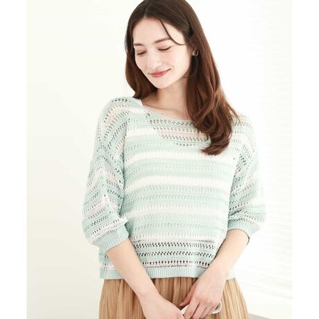 マルイウェブチャネル   /   MK ミッシェルクラン   /   トップス   /   ニット・セーター   /   ボーダーメッシュ編みショート丈ニット/洗える