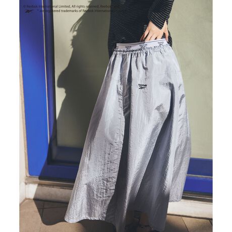 ・さわやかなナイロン素材をフレアーシルエットに落とし込みミニマルで洗練されたデザインに