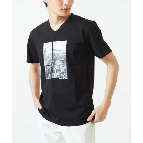 【洗える】モノクロフォトグラフィックプリントTシャツ