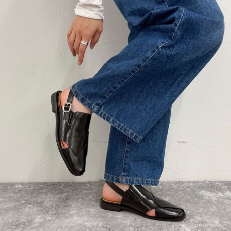 【REMME/レメ】レザークロス編みバックストラップシューズ