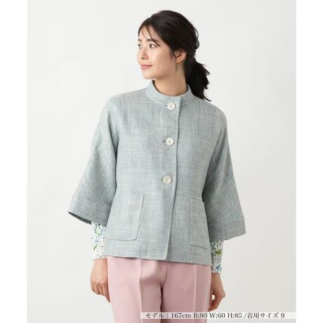 麻をブレンドした、やや薄手の生地を使用した一重仕立てのスタンドカラージャケット。爽やかなカラーリングと肌に馴染むナチュラルな質感がこれからの季節にぴったり。シルエットにはややゆとりをもたせており、端正なフォルムのスタンドカラーとクロップドスリーブも相俟って、こなれ感のある上級者らしい佇まいの着こなしを演出。軽やかに羽織れるデザインで、カジュアルからきれいめまで幅広いコーディネートにマッチする着回し力の高いアイテムです。------------------------------------着用シーズン:初夏伸縮性:なし透け感:なしポケット:あり生地の厚さ:やや薄手裏地:なし-------------------------------------※商品の色味は、撮影場所や光のあたり具合、お客様のお使いの機器により色味が違って見える場合がございます。予めご了承ください。