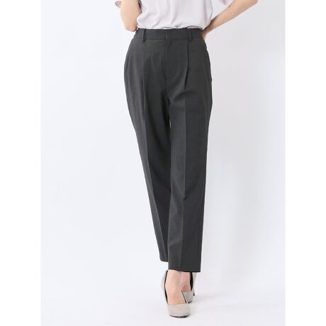 腰回りに余裕があるワンタックのワイドパンツです。センタープレスでキチンと感のある印象に仕上げています。ウエストはバックシャーリングで着用ストレスを軽減。前ファスナー仕様、ベルト通し付き、前後ポケット付きです。