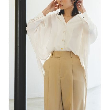 シルクデシンのような肌離れの良い素材を使用したことで、シャツとブラウスの中間のような、程よくカジュアル&フェミニンな仕上がりに。