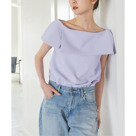 潔いデコルテの開きが女性らしさを引き立てるケープブラウス。