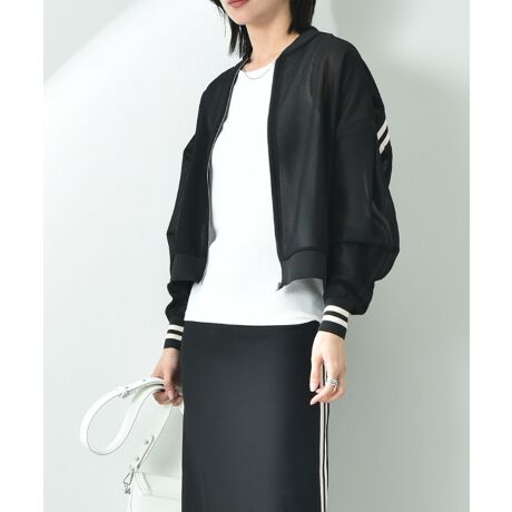 程よい透け感で大人の女性が着まわせるメッシュブルゾン。今季トレンドのシアー素材で旬なスタイルが完成します。袖口とバックにメリハリのあるライン配色をプラス。スポーティーな印象のブルゾンですが、上品なシアー感が、カジュアル過ぎないモードな大人の印象で、綺麗目に着用していただけます。