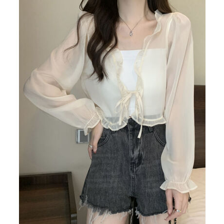 程よく揺れるフリルが顔周りを美しく演出して、女性らしさも高まる。