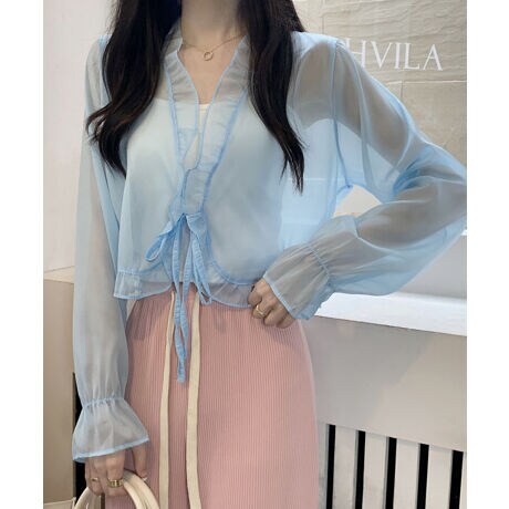 リボンフリルショート丈シアーカーディガン