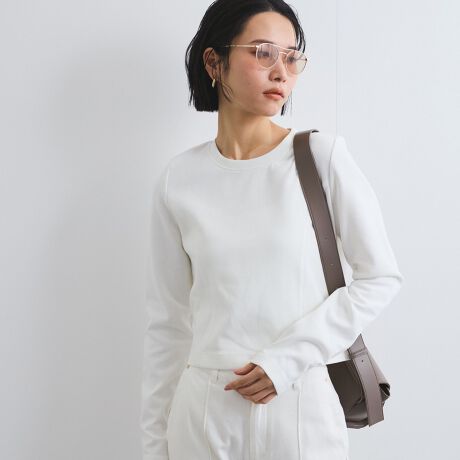 ―ベーシックなカットソーはサイド切替えとクロップド丈でアップデートー