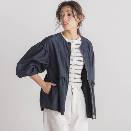 ファスナーを閉めてブラウスライクに着こなすのもおすすめです。