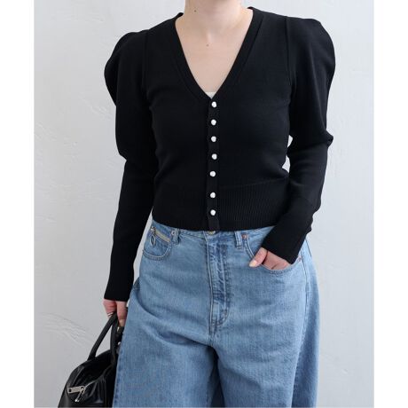 お花型のボタンがさりげなく大人可愛いニットカーディガン。