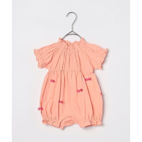 たくさんのプチリボンがアイキャッチな半袖ロンパース。ボトム部分はパンプキンシルエットになっており、この時期ならではかわいらしさが楽しめる一着。綿100%のサッカーブロードでベビーにも安心。凸凹した立体感のある生地で夏でもさらりと着用していただけます。p.premierならではの絶妙なカラーリングがポイント。特別感のあるデザインでギフトにもぴったり。
