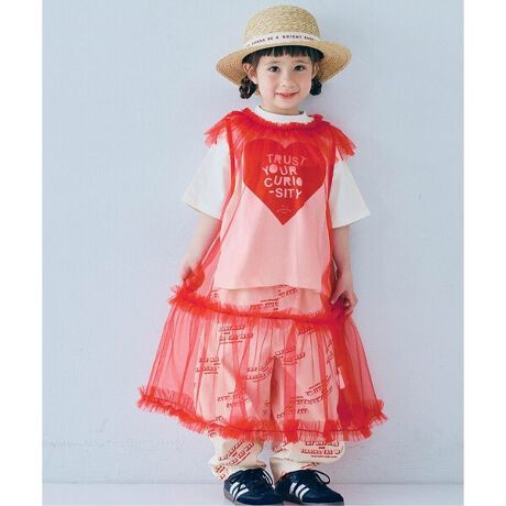 大胆なチュール使いが目を惹く、チュールフリルレイヤードワンピース。Tシャツとパンツの上などに着用して、インナーを透けさせるコーディネートを楽しむ主役級アイテム。きょうだいやおともだちとおそろいにして、リンクコーデをたのしむのもおすすめ。p.premierならではの、まわりと差がつく一着です。