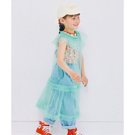大胆なチュール使いが目を惹く、チュールフリルレイヤードワンピース。Tシャツとパンツの上などに着用して、インナーを透けさせるコーディネートを楽しむ主役級アイテム。きょうだいやおともだちとおそろいにして、リンクコーデをたのしむのもおすすめ。p.premierならではの、まわりと差がつく一着です。