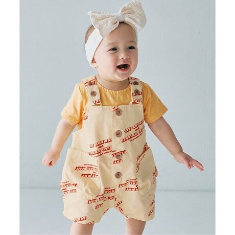 総柄ツイルのベビーオーバーオール。