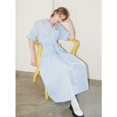衿元の開襟デザインがほのかにレトロな雰囲気を出しつつ、たっぷり入れたギャザーが女性らしいシルエット。