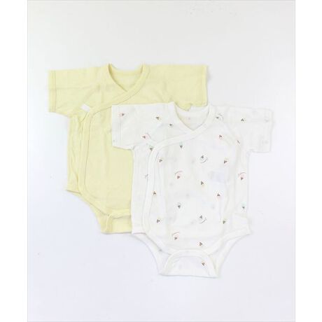 [型番:30333105]【綿100%】Sishunon(シシュノン)の「2Pロンパース肌着」柔らかいやさしいジャガード天竺素材です。嬉しい柄と無地の2枚セット!ギフトや出産祝いにもおすすめです。