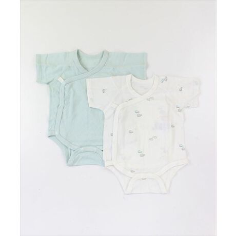 [型番:30333105]【綿100%】Sishunon(シシュノン)の「2Pロンパース肌着」柔らかいやさしいジャガード天竺素材です。嬉しい柄と無地の2枚セット!ギフトや出産祝いにもおすすめです。