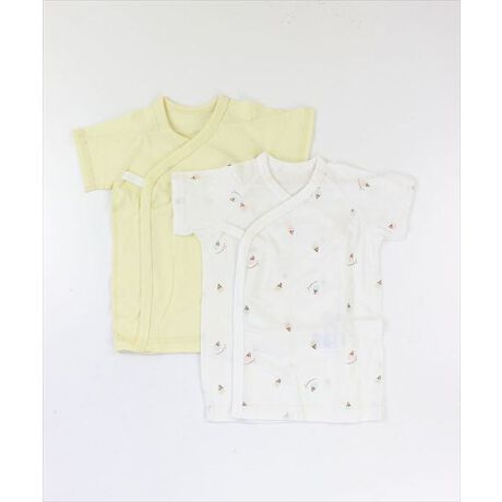 [型番:30333106]【綿100%】Sishunon(シシュノン)の「2P短胴着肌着」柔らかいやさしいジャガード天竺素材です。嬉しい柄と無地の2枚セット!ギフトや出産祝いにもおすすめです。