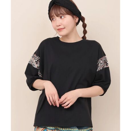 エスニック調のフラワー柄はシンプルなデザインにアクセントをプラスしています。