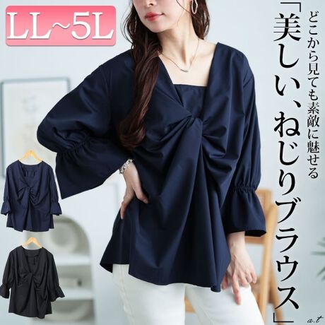 【大きいサイズ】 バックタックツイストブラウス 大きいサイズ レディース トップス ブラウス シャツ