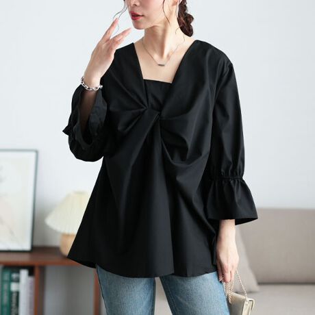 女性らしさを高める、バックタックツイストブラウス。立体的なツイストデザインが胸元から裾にかけて美しいシルエットを演出し、ふんわりとお腹周りを自然とカバーしてくれます。バックタックを施し、後ろ姿までお洒落&スッキリ見え。さらりとした生地感で着心地良く、見た目にも上品な質感。キレイめな印象でオンにもオフにも活躍してくれるアイテムです。