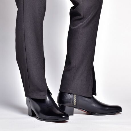 シャープな木型を使用した上品なシルエットのレザーヒールブーツ。