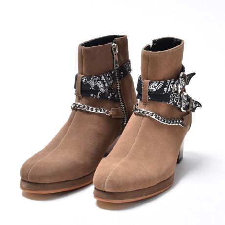 レザー バンダナ チェーンベルト プラットフォーム ヒールブーツ / 本革 レザーブーツ / 日本製