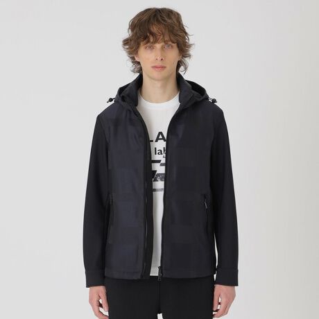 ファッション性と機能性を兼ね備えたスポーティーなカジュアルウェアコレクション【BLACK lab.】から、異なる素材を組み合わせたハイブリッドデザインのスポーツパーカーが登場します。それぞれ複雑な組織のチェック柄とジャージー素材をミックスし、スポーティーな附属使いにすることで洗練されたデザインに仕上げています。また、フード取り外しが可能な2WAY仕様で、スタンドブルゾンとしても着用が可能です。