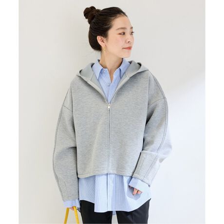 同素材のパンツとセットアップ着用もおすすめで、裏毛スウェット地よりもカジュアルになりすぎずに履いていただけます。