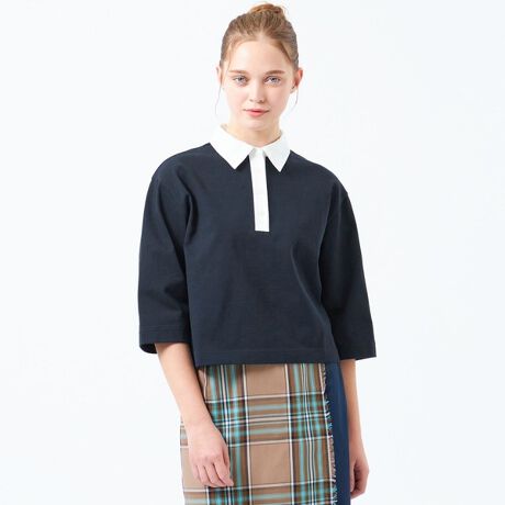 コンパクトな着丈にゆとりのある身幅がトレンド感のあるラガーシャツ。