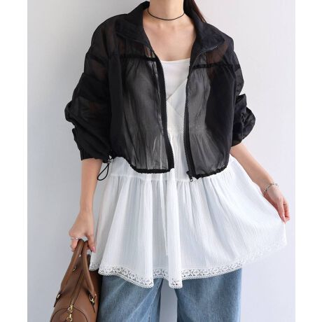 ショート丈 シアー ジップ ブルゾン Freesia フリージア