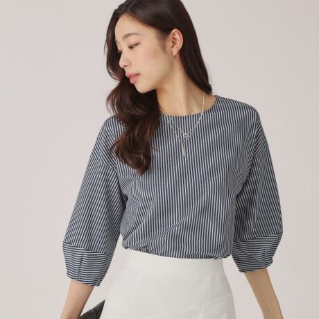 伸縮性のあるストライプジャージで清涼感がある素材です。