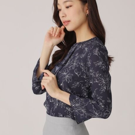 線タッチの繊細なフラワープリントのブラウス。