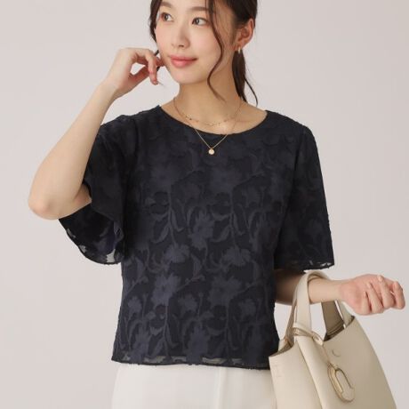 【洗える/日本製】シフォンカットジャカードのブラウス