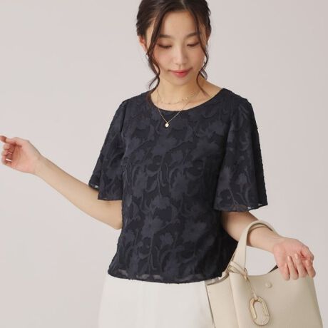 【洗える/日本製】シフォンカットジャカードのブラウス
